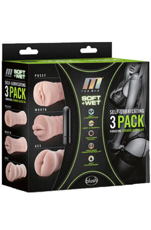 3 Separate sleeves to mimic vaginal, oral and anal sex