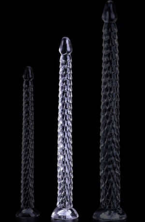 The Armak transparent dildo is a sextoy designed with a soft structure and a fully textured surface like scales.