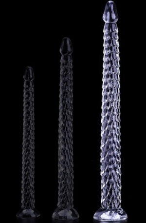 The Armak transparent dildo is a sextoy designed with a soft structure and a fully textured surface like scales.
