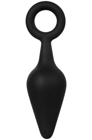 This black butt plug has a tapered design and a finger ring for both comfortable and safe use. The finger ring is bendable. Made of nice, soft silicone.