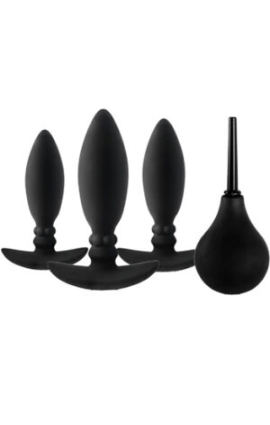 Black Anal Training Plug Set with Cleansing Pump
