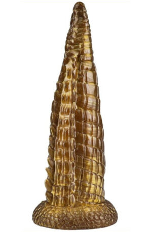 For those who appreciate extraordinary dildos, the ToppedMonster brand offers a wide range of colorful and unique dildos. The golden surface is heavily textured for delightful stimulation and can be used both anally and vaginally. Made from body-safe PVC and compatible with both silicone and water-based lubricants. Total length 24 cm, penetrating length 22 cm, and maximum diameter 6 cm.