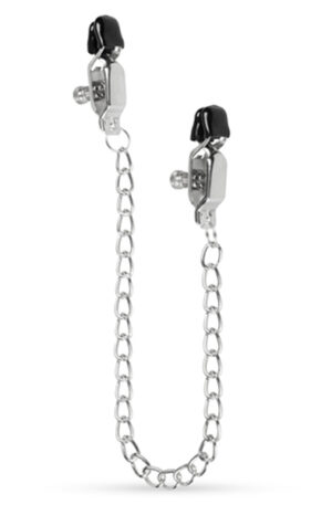 The metal chain completes the experience. Grab hold of it and gently pull the clamps of give away control and let your partner handle the chain and the clamps.