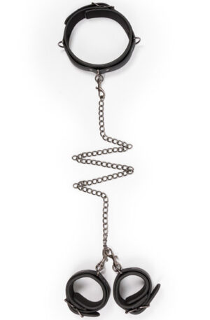 Get full control of your subordinate with this amazing device from the popular brand Easytoys! This construction consists of a necklace with handcuffs that can be easily separated from each other by means of carabiners. Made of robust artificial leather and lined with foam, which makes them durable and very comfortable to wear. The necklace is adjustable from 45 cm to 58 cm and the handcuffs can be adjusted from 11 cm to 28 cm. The chain has a total length of 40 cm. Combine this special set with other bondage accessories such as whips and nipple clips for an extra exciting experience.