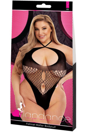 Fishnet Halter Queen Bodysuit Black