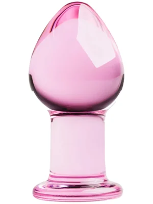 Elegant glass anal plug with a tapered tip for easy insertion, featuring a wider body, a slim handle, and a round base. For added stimulation, you can cool down or warm up the plug by placing it in warm or cold water for a few minutes. Easy to clean. Length: 9 cm, Diameter: 4.3 cm.