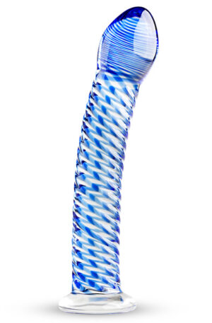 The Blue Lined Glass Dildo is transparent and has blue shaft and head details for a stylish look.