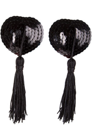 Sexy black heart shaped nipple pasties with tassels.