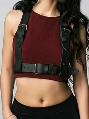 The Xenia harness from the KinkHarness brand is an accessory designed to emphasize the female bust. It has adjustable 3.5 cm wide straps that pass at the waist and over the shoulders. It is made of polyurethane.