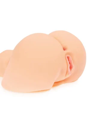 The vagina has open labia and a G-spot on the inside for a lifelike feeling. The anus opening is narrow and has stimulating ribs on the inside.
