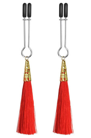 Tantalizing nipple clamps from the brand Lovetoy. Rubber-coated tips for comfortable use. The clamps are decorated with small red tassels for a sensual look. Glamor Tassel has a total length of 14 cm.