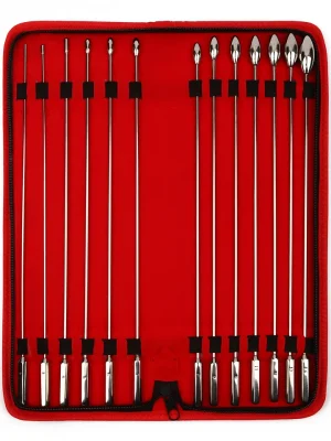 The Mr. Steel Rosebud Urethral Sounds are designed for those who seek precise urethral stimulation. Made from high-quality stainless steel, these sounds feature a rounded bulb tip, providing targeted pressure and enhanced sensation with every movement. Each set includes multiple sizes, allowing gradual exploration and controlled intensity. The polished, smooth shafts ensure a safe and comfortable experience, while the ergonomic handle allows for precise maneuvering. Ideal for experienced users looking to refine their urethral play. Always use with sterile lubricant and clean thoroughly before and after use.