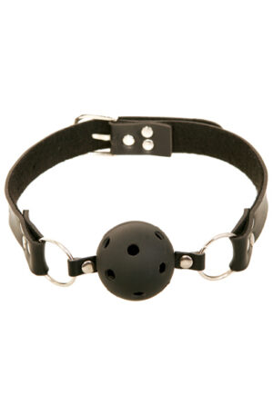 A good ball gag is a staple of any fetish or bondage collection. If you're new to restraints, the Breathable Ball Gag from the Fetish Fantasy Series is a less intimidating, safe place to start experimenting with gag tools. This gag has a 'wiffle' style, semi-firm rubber ball with holes throughout. This style of ball makes sure the wearer has constant airflow, while still holding the mouth open and restricting speech. The design has comfort in mind, with a quality leather strap lined with soft material, and an adjustable buckle strap reinforced with rivets and metal rings on either side of the ball. Once you have your willing submissive partner buckled up, add even more excitement by slipping the included blindfold on him/her and play away.