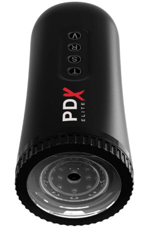 PDX Elite Moto Blower Stroker from Pipedream Products. The Moto Blower does not just stroke you like ordinary masturbators, it combines incredible suction and vibration with a super smooth automatic stroking motion! The internal thrusting mechanism is completely hidden inside and features a metal gripping ring around the sleeve that strokes and squeezes your shaft. The ring is lined with a row of pleasure beads that roll up and down your rod, while the super soft Thermoplastic Rubber TPR sleeve wraps around every inch. The rechargeable motor offers professional grade performance with 2 levels of intense stroking speeds, 3 powerful suction modes, and 5 thrilling vibration patterns that will drive you wild! Slide into the tight TPR sleeve and surround your shaft with rows and rows of soft pleasure nubs, then personalize your pleasure with the press of a button. Your ultimate blow job experience is ready when you are! High powered Piston Action Thrusting The ultra strong motor:activated with the T button, powers the row of beads with 2 speeds that massage you penis with each internal thrust. Powerful vibrations 5 patterns of intensely satisfying vibrations, activated with the V button, heighten your experience. Removable soft and stretchy sleeve is lined with rows and rows of stimulating pleasure nubs. Pleasantly warms to your body temperature and is removable for solo fun and easy cleaning. 3 modes of stimulating suction, activated with the S button, snugly tugs your most sensitive area. Press the release button R to experience extra pulsing excitement. Regular masturbation strengthens pelvic floor muscles, helping to prevent erectile dysfunction ED in men. Edging, the practice of purposely delaying orgasm, can build sexual stamina and can help with ED by encouraging healthy blood flow to the penis. 90 days limited warranty. 90 days limited warranty. Includes 3 free designer cock rings. Sizes 1 inch, 1.25 inches and 1.5 inches.