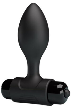 Anal plug with removable bullet vibrator. Features 10 powerful vibration functions. Made of silicone and ABS plastic. Waterproof. Powered by 1 AAA battery. Insertable length: 5 cm. Maximum diameter: 2.5 cm.