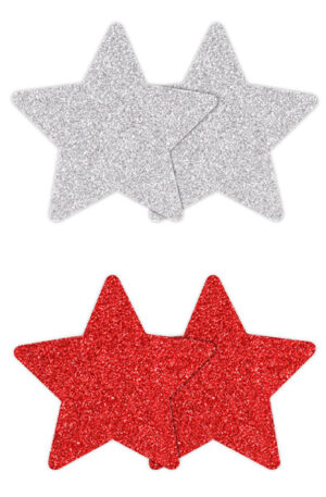 Hearts, Stars, Crosses and more! Pretty Pasties by NS Novelties is a collection of adhesive nipple covers guaranteed to excite and entice. Comfortable and secure during wear and effortless to place and remove. Available in an assortment of shapes, colors, patterns, and finishes – Pretty Pasties are the perfect body décor for a passionate time.