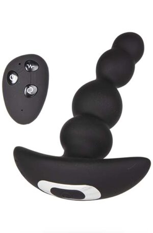 Prostate vibrator with internal rotating beads and a wireless remote control that lets you easily control the fun!