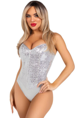 Shine like a star in the Sequin Boned Bodysuit, a stunning one-piece that combines elegance and allure. This glamorous bodysuit is adorned with shimmering sequins, designed to catch the light and dazzle from every angle. The structured boned design provides a flattering fit that accentuates your curves, while the snap crotch closure ensures comfort and convenience. Complete with detachable clear straps, this bodysuit offers versatile styling options to suit your mood—wear it strapless for a daring look or with straps for added support.