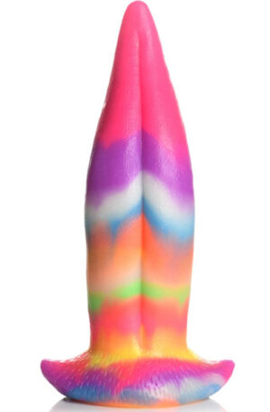 This multicolored Unicorn Tongue glow in the dark dildo is designed to provide pleasure and aesthetic satisfaction. Enjoy the intricate details along the shaft and base of this beautiful dildo. The suction cup base allows for hands-free riding or pairing it with a strapon harness. The dildo is made of phthalate-free and body-safe premium silicone, making it easy to care for and clean. It can be used both vaginally and anally. Remember to use only water-based lubricants for optimal use.