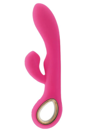 This rabbit vibrator from Toyz4Lovers is made from high-quality, silky silicone, featuring a gold-colored ring at the base that makes it irresistibly comfortable and manageable. The Double G - Touch Grip is equipped with 5 different luxurious vibration functions and 10 intense vibration modes, which can be easily selected with three practical buttons providing stimulation to both the clitoris and G-spot. Its design is sophisticated and elegant, with a practical and comfortable integrated ring-shaped handle for full control even in the most passionate and erotic moments. Waterproof, with a dual motor that can deliver powerful vibrations. USB rechargeable. Total length 18.8 cm, penetrative length 10.5 cm. Maximum diameter 3.2 cm.