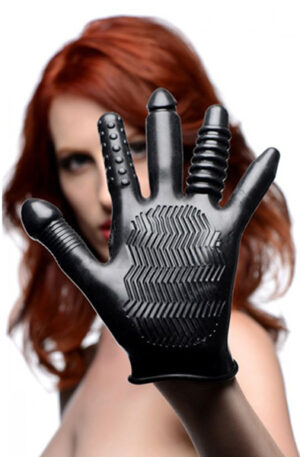 The Pleasure Poker glove is so versatile that it may become a staple in all of your sexual experiences! So many ways to use... finger, stroke, massage, or spank. Whether you are male or female, playing solo or with a partner, this glove is perfect for you! Each of the five fingers is uniquely shaped for a range of sensations during anal or vaginal insertion: smooth and tapered, bold ridges, penis-shaped, raised nubs, or bulbed with subtle ribbing. The palm has a zig-zag tread that brings extra excitement to a handjob or masturbation. This double-sided glove works on both hands and is compatible with silicone and water-based lubricants. Clean with mild soap and water.